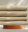 Toallas beige de algodón natural con textura de rizo y detalle en zigzag Toallas beige de algodón natural con textura de rizo y detalle en zigzag
