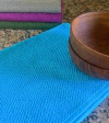 Pie de baño institucional blanco de algodón con borde tejido, acompañado de un cepillo de madera y una esponja Pie de baño institucional blanco de algodón con borde tejido, acompañado de un cepillo de madera y una esponja