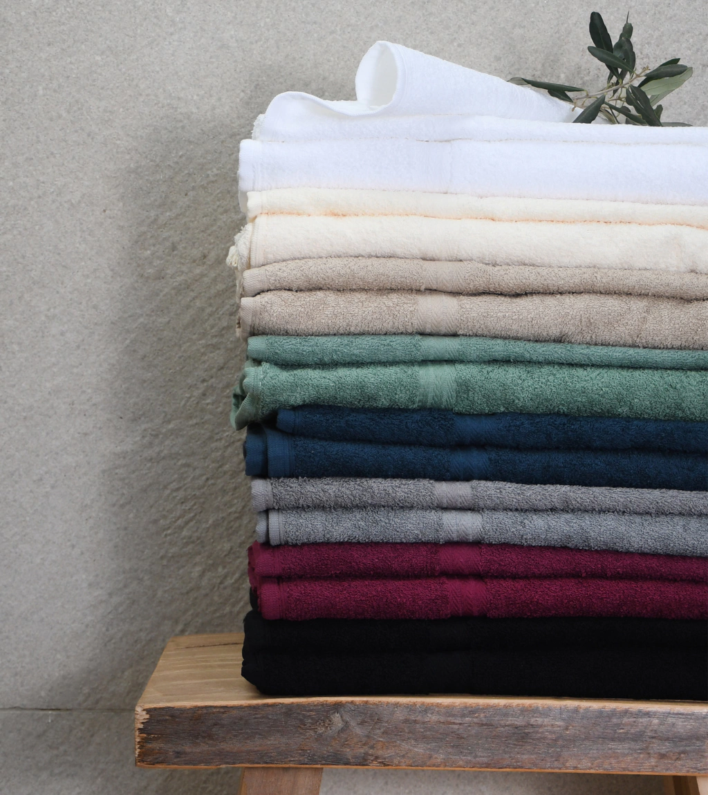 Las toallas y toallones son de 420gr/m2, el equilibrio ideal para el día a día. Son muy absorbentes y se secan rápido