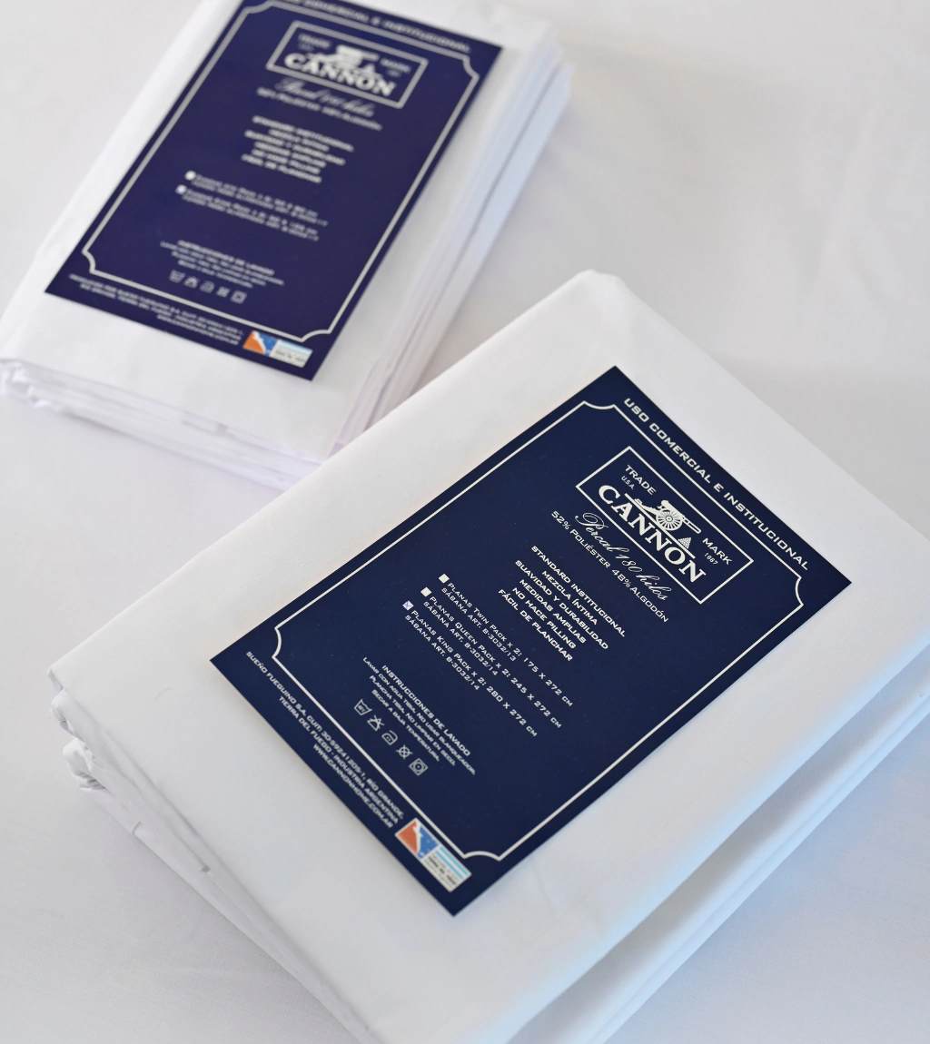 Las sábanas planas de Cannon son las aliadas indiscutidas del sector institucional. Cuentan con un standard internacional, hechas con mezcla íntima, no hacen pilling y son fáciles de planchar. Suavidad y durabilidad garantizadas. Uso comercial e institucional. Linea institucional