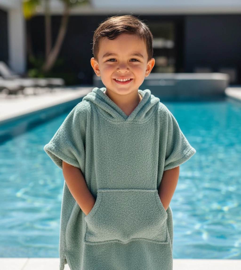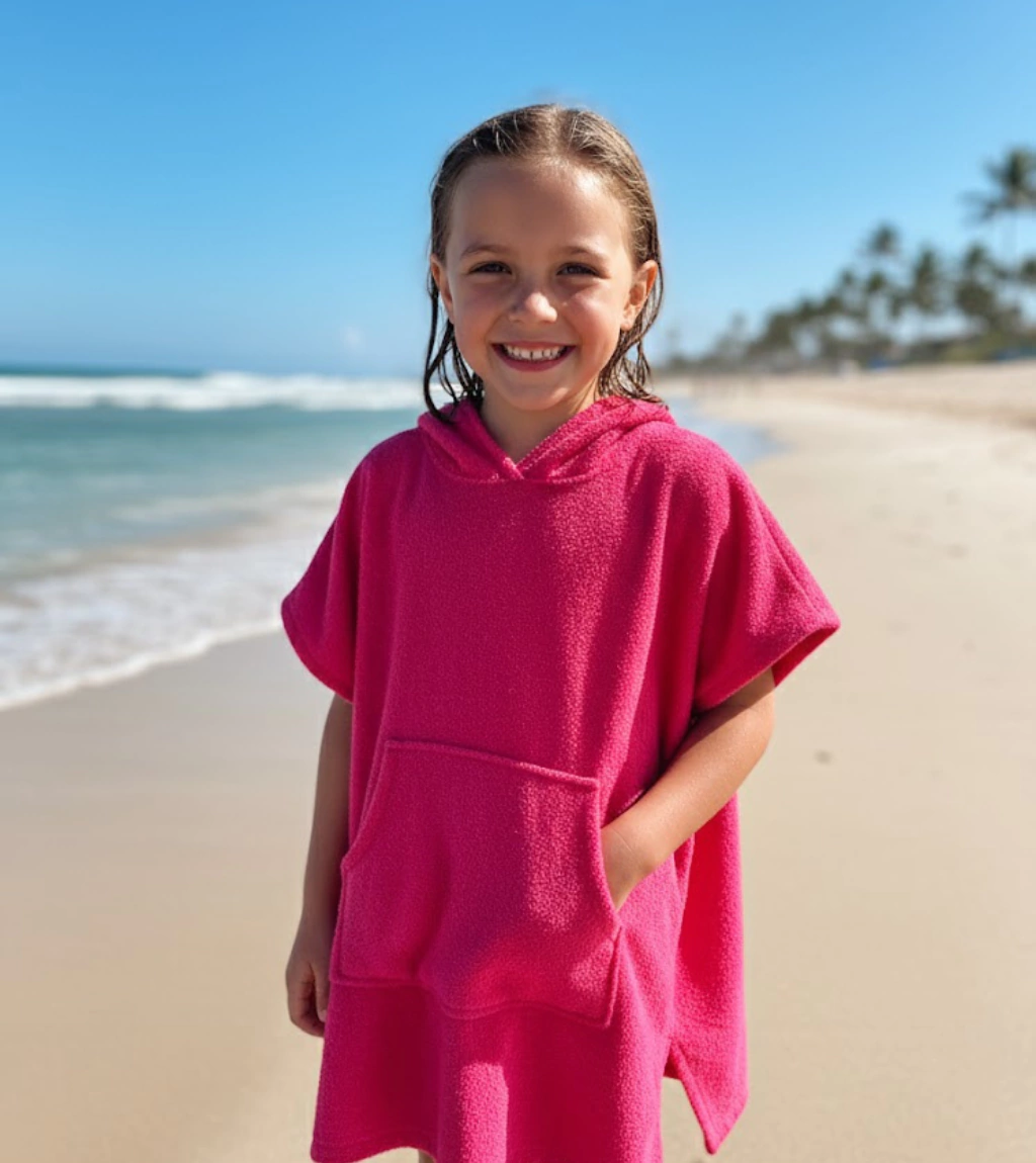 El mejor material para la piel de los niños es el algodón. Por eso, para que puedan jugar y divertirse durante los días de calor sin preocupaciones, creamos este poncho fabricado con tela de toalla 100% algodón. Estas toallas son de 420gr./m2 y vienen en tres talles.