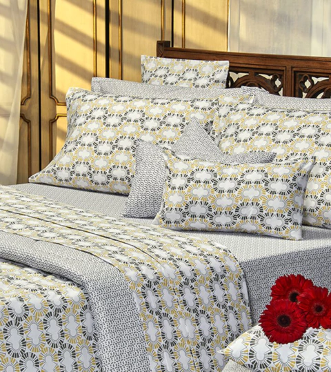 Las sábanas danubio Geo estan hechas de percal mezcla (48% algodón, 52% poliéster) con 144 hilos, inspiradas en el estilo urbano y natural, ofreciendo una sensacion de calma y descanso.